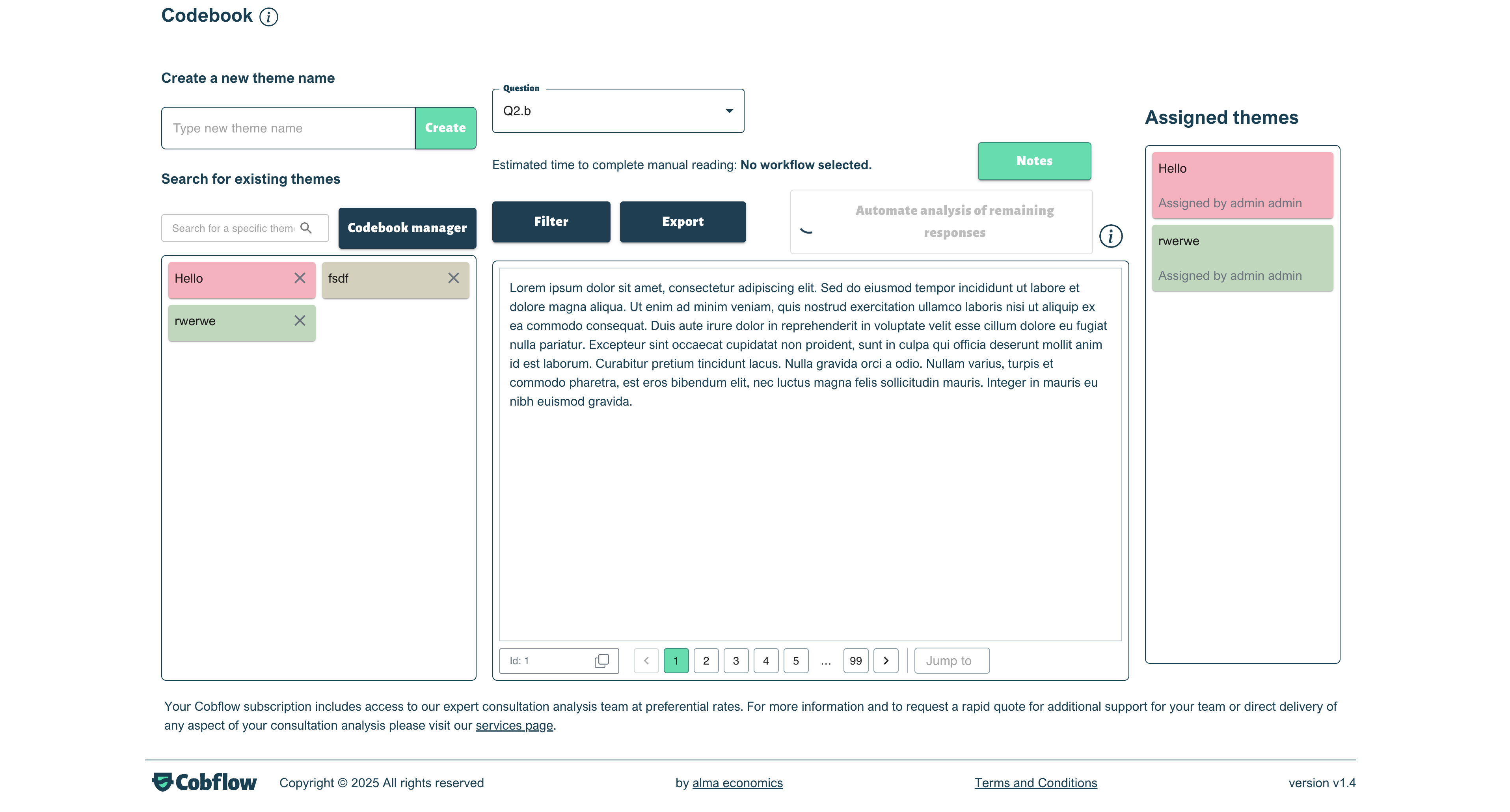 Cobflow is a powerful online platform that transforms consultation responses into actionable insights. Integrating both quantitative and qualitative research tools, Cobflow supports end-to-end functionality from uploading data and anonymising responses to generating tables and reporting on key findings. Whether dealing with structured closed-ended questions or complex free-text responses, Cobflow helps incorporate diverse public feedback into the policymaking process.