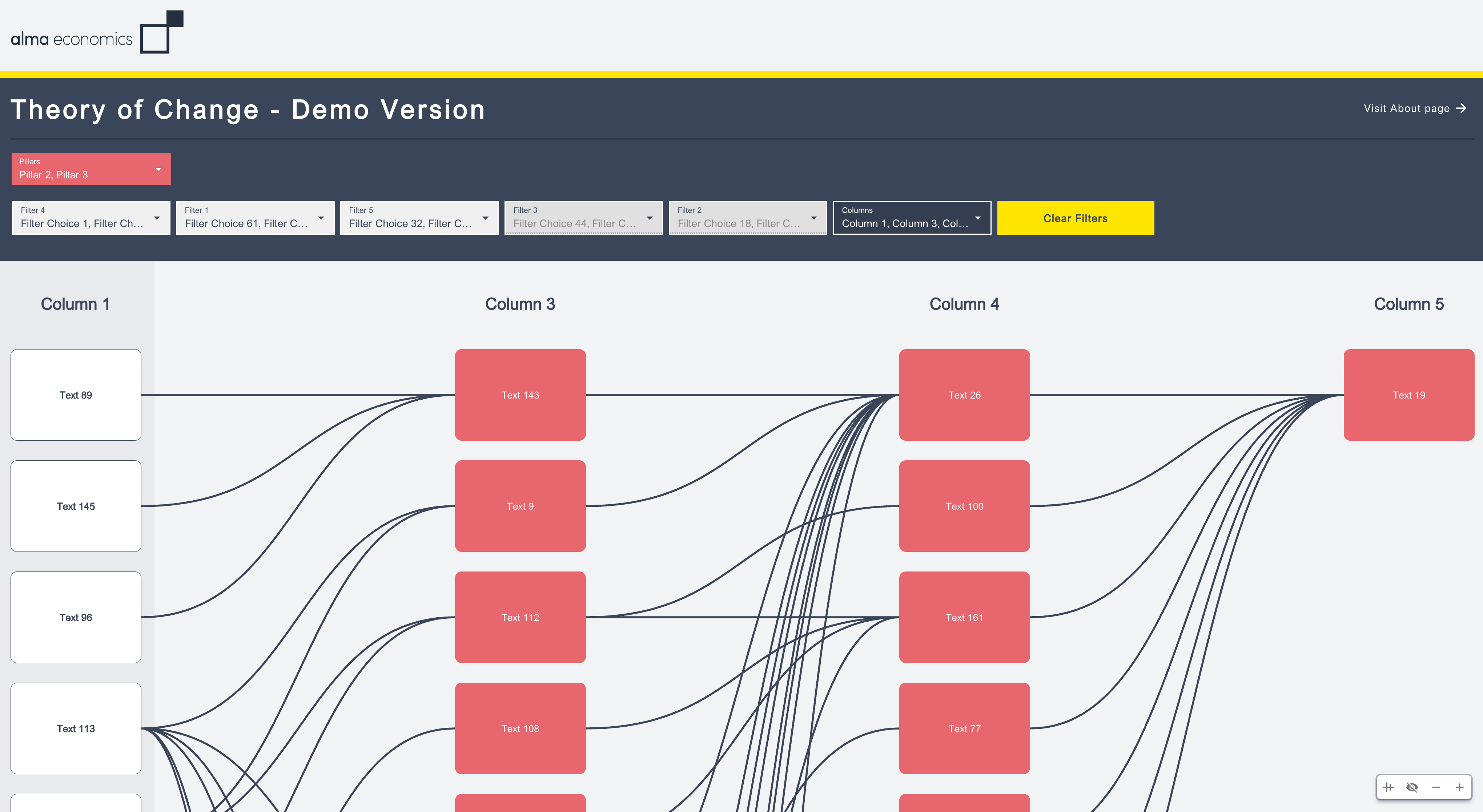 We deliver evaluations assessing the design, implementation and outcomes of public policies and programmes. Through our work delivering ‘theory of change’ (TOC) analysis, we routinely see complex relationships between activities, outcomes and impacts. Static TOCs cannot incorporate this complexity. We saw an opportunity to develop software that was interactive and easy to use, allowing users to dynamically explore complex impact paths.