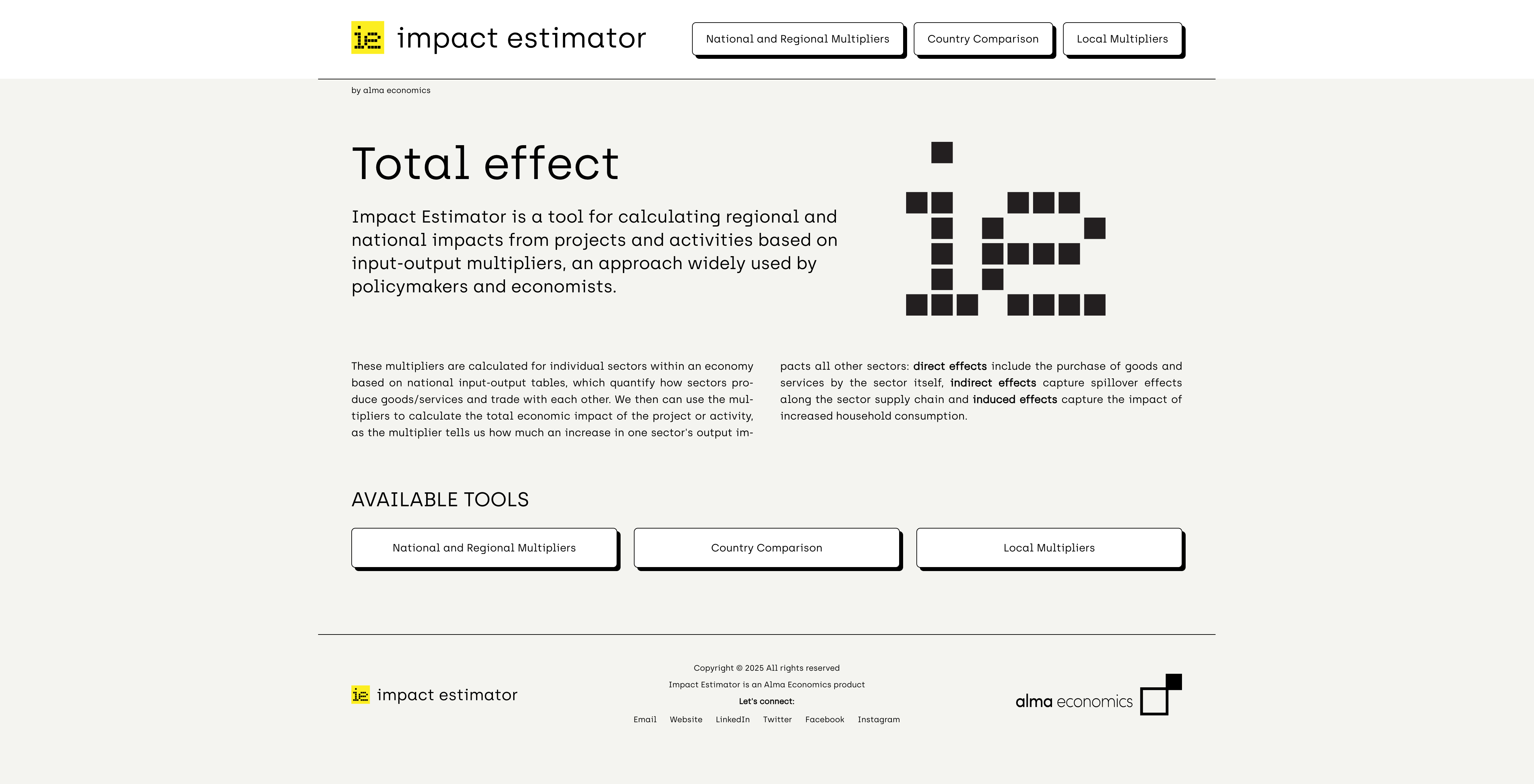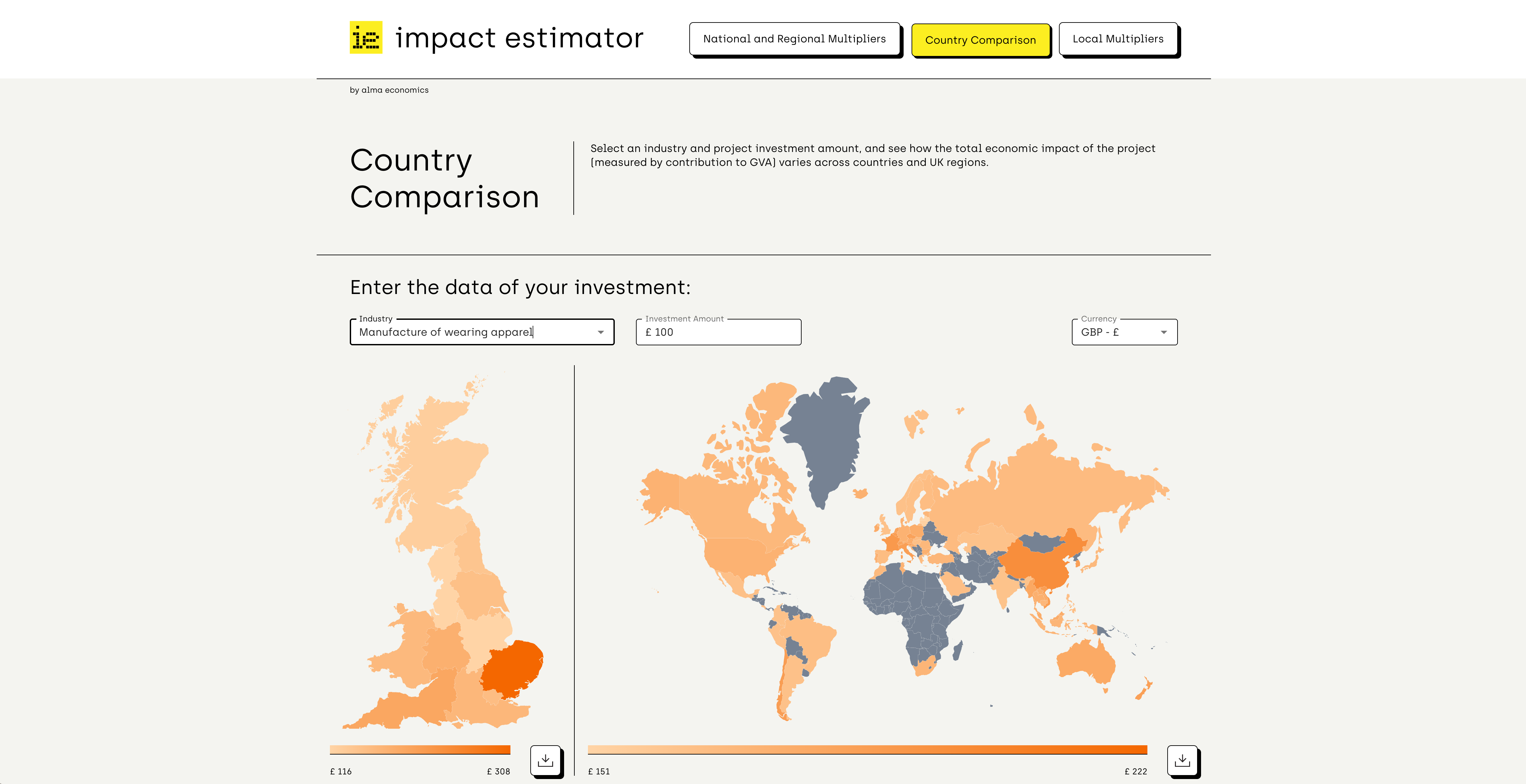 By drawing on input-output tables published by national statistics authorities, Impact Estimator helps researchers and policymakers to understand how an investment in one sector can have spillover effects on the wider economy.